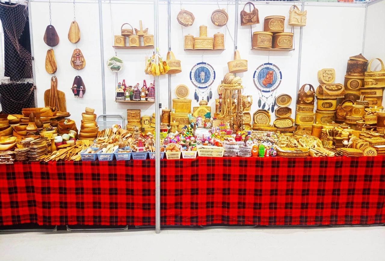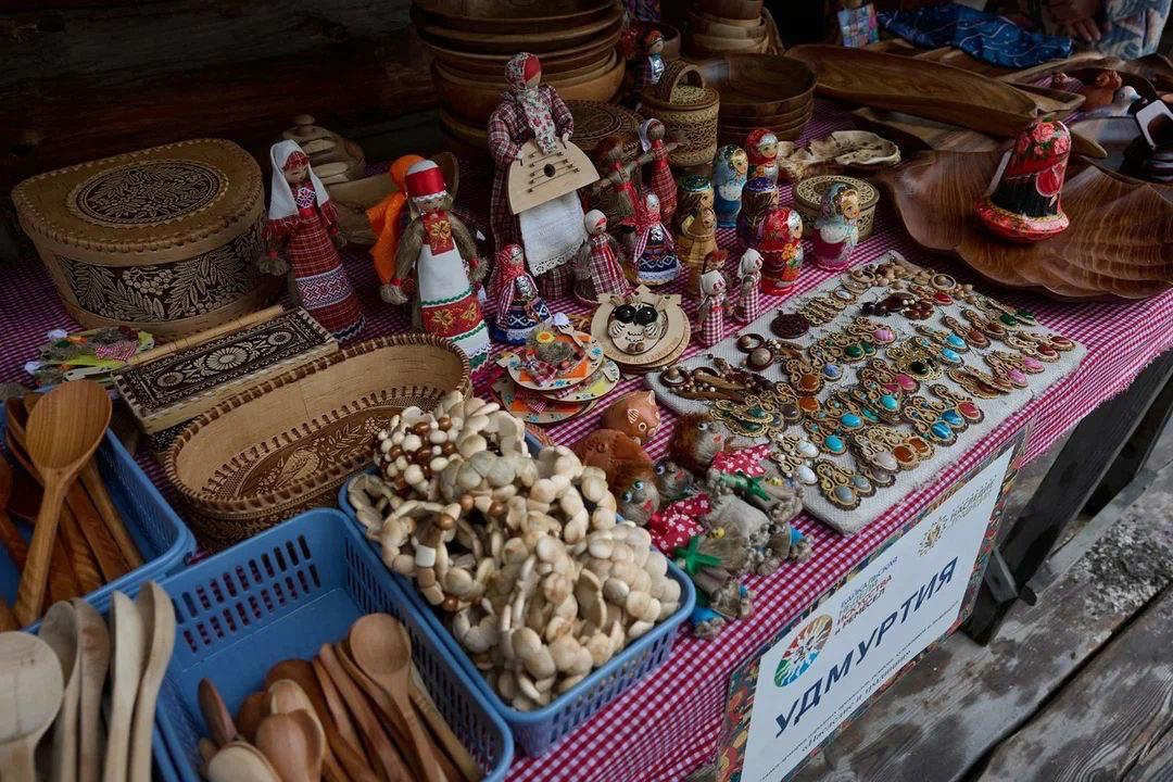 Здесь вас ждут удмуртские сувениры ручной работы из бересты и дерева — карагач, орех, береза, рябина и яблоня.